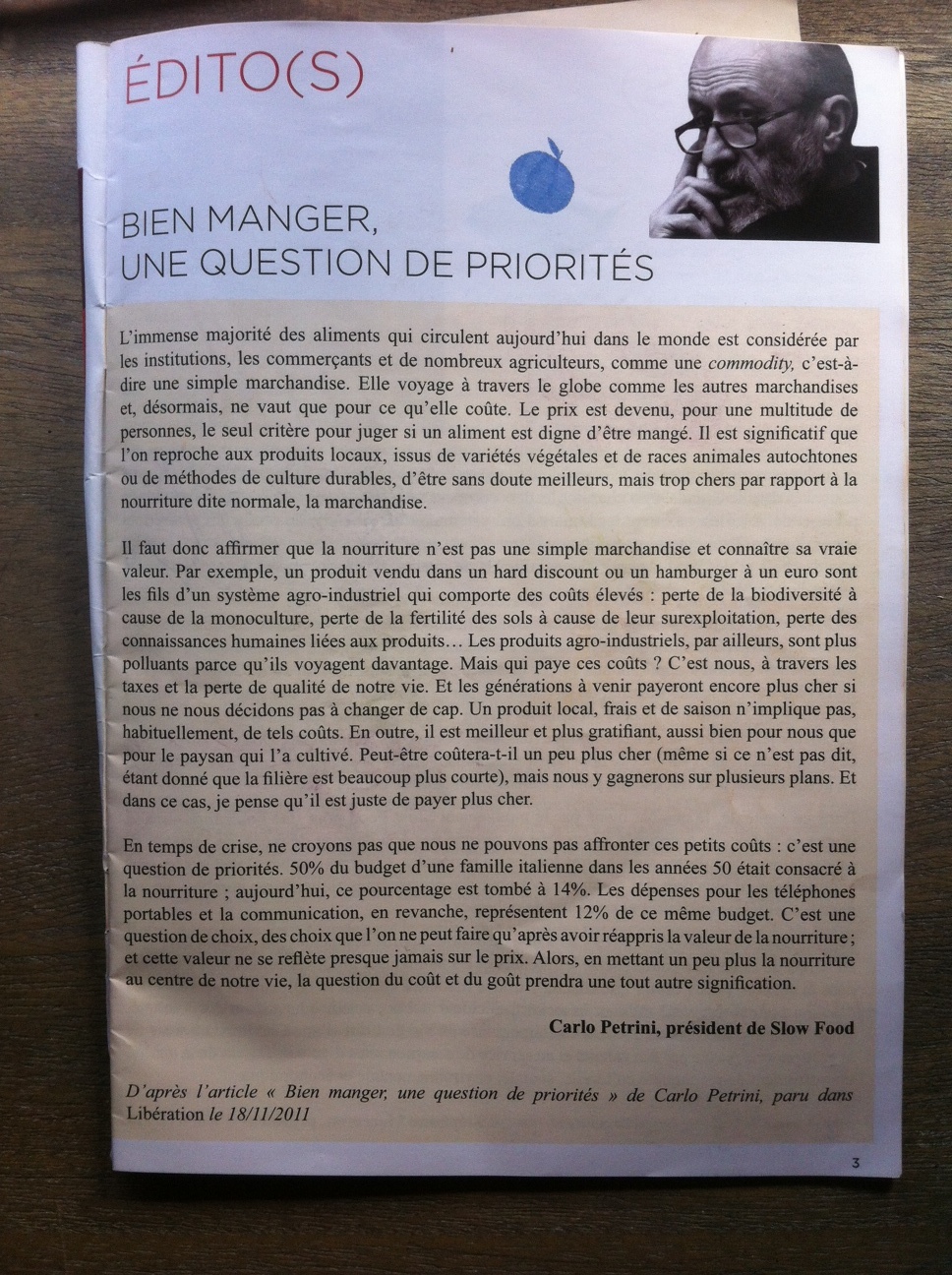 Nous remercions, Lucia Penazzi pour ses talents de coordinatrice, et son investissement, et le couple qui nous a hébergé, attendant patiemment 1heure du matin que l’on soit sortis du restaurant où nous mangions avec les conférenciers Slow Fish, et que notre GPS reconnaisse que le tram est à Tours, ce que la carte papier est au voyageur prudent, que nous n’étions pas !