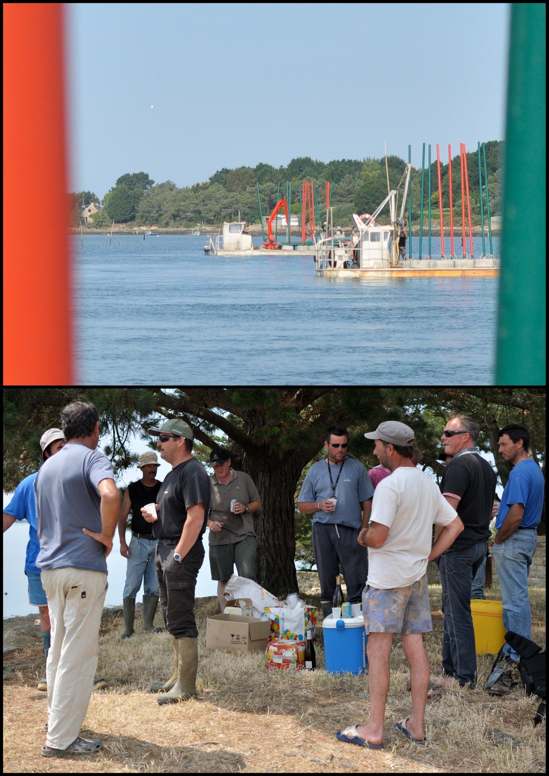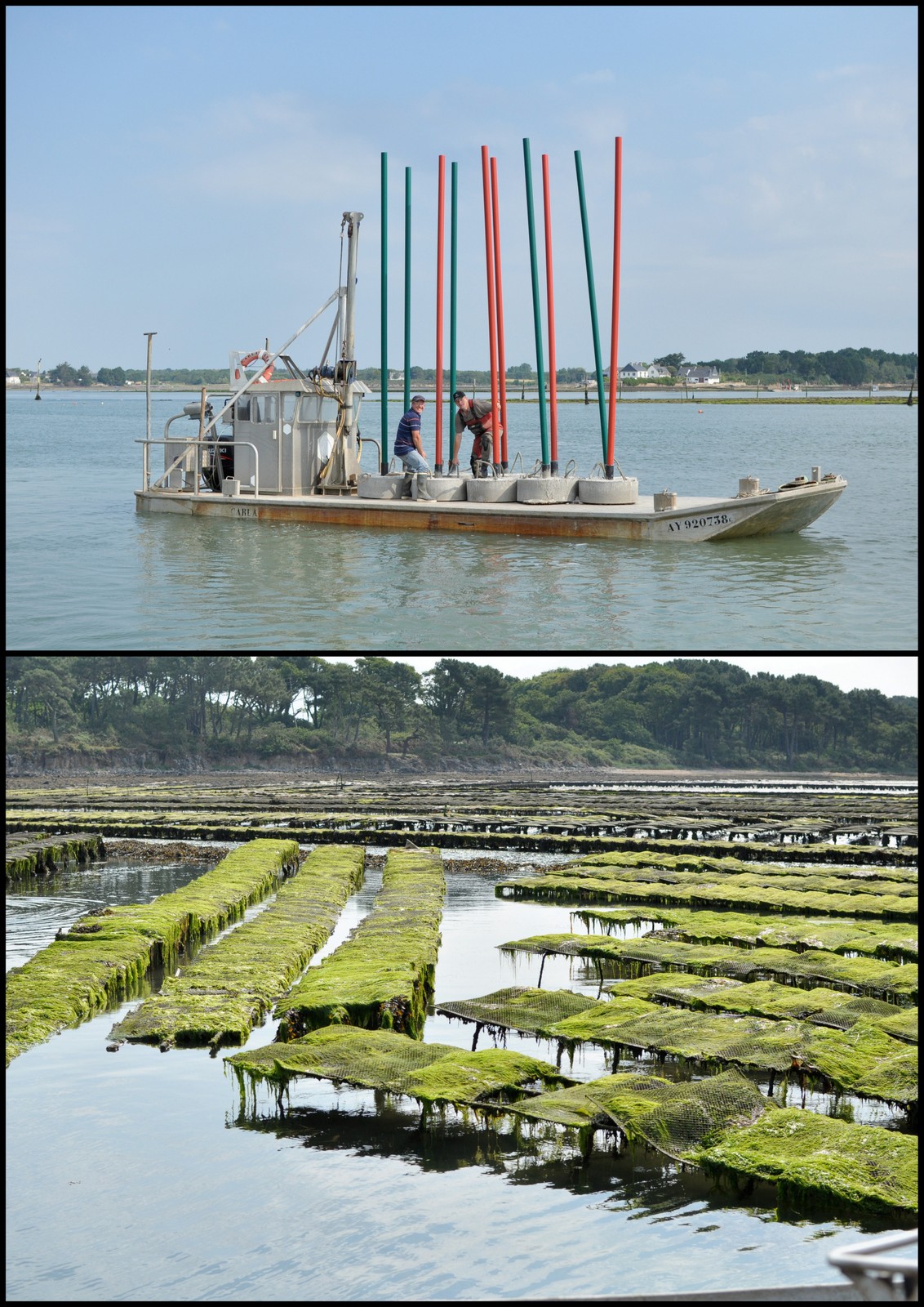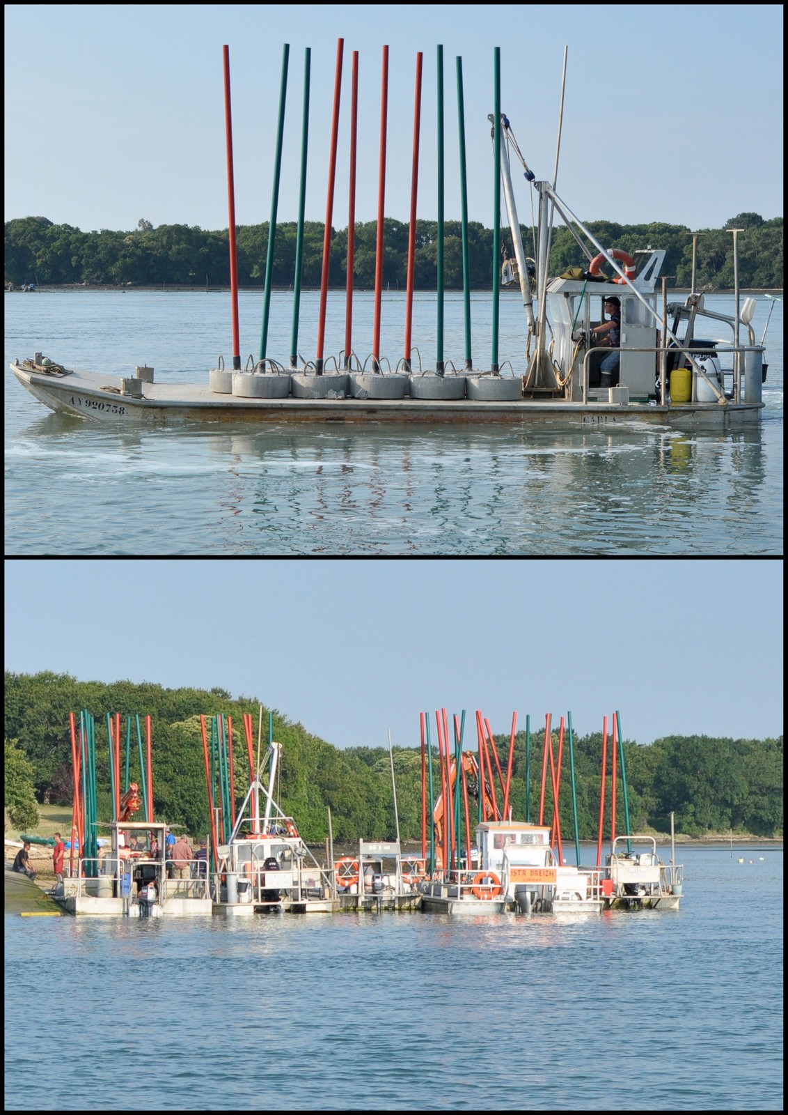 En mai et en juin de cette année, des ostréiculteurs se sont rassemblés autour des chalands pour aller poser ces balises.