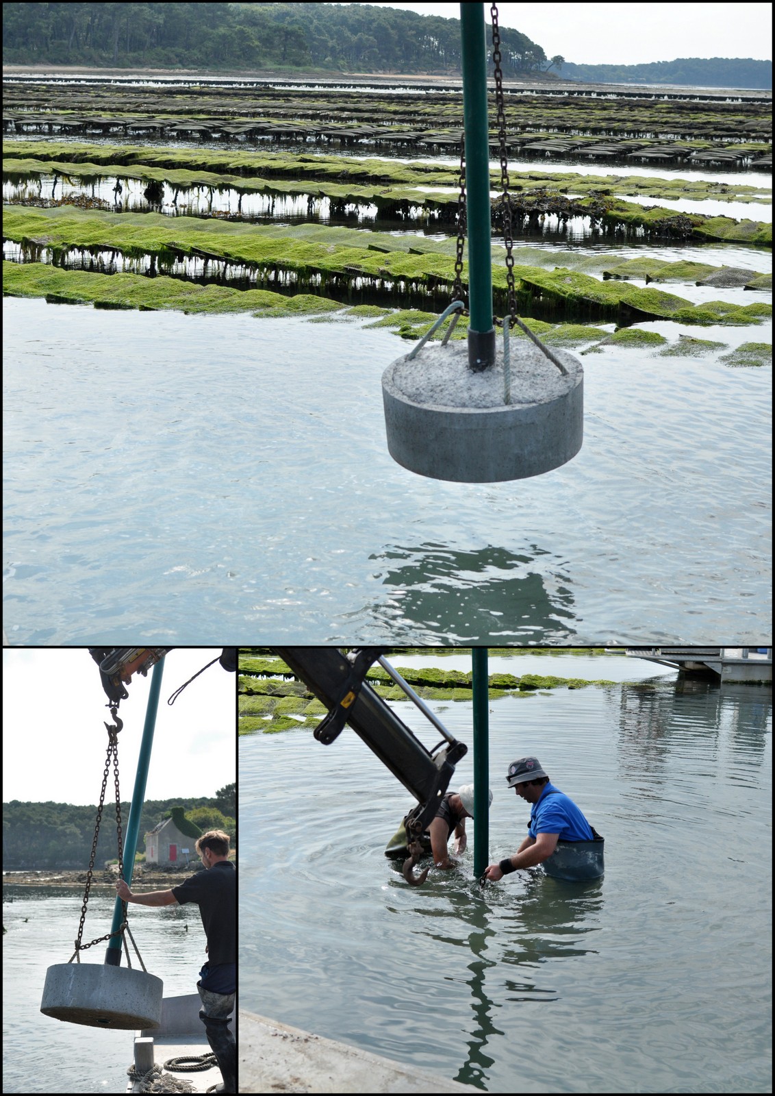 Il fallait donc, pour cette opération, des chalands avec des grues, qui seules pouvaient lever et poser ces corps morts. Les balises y avaient été vissées le matin même.