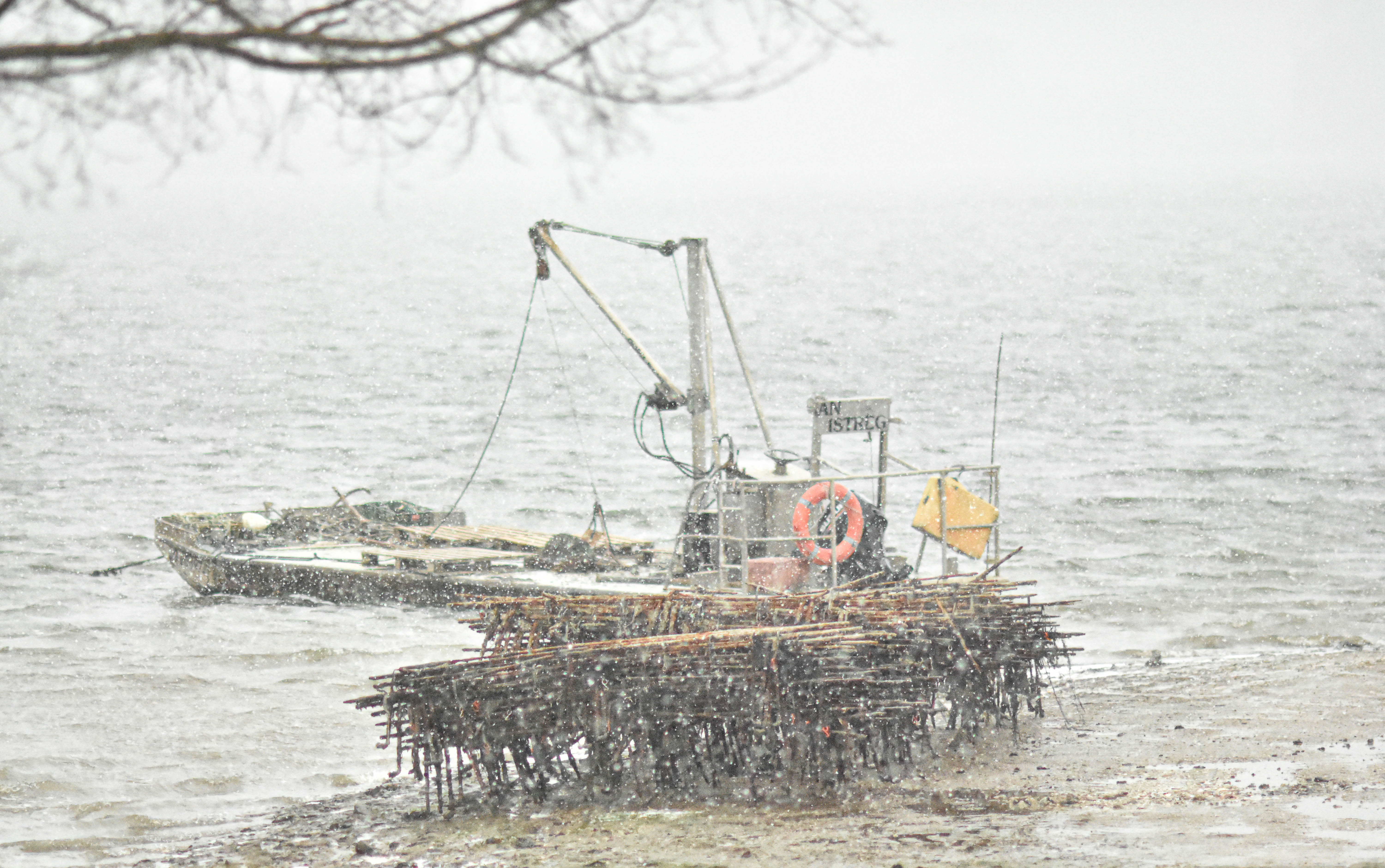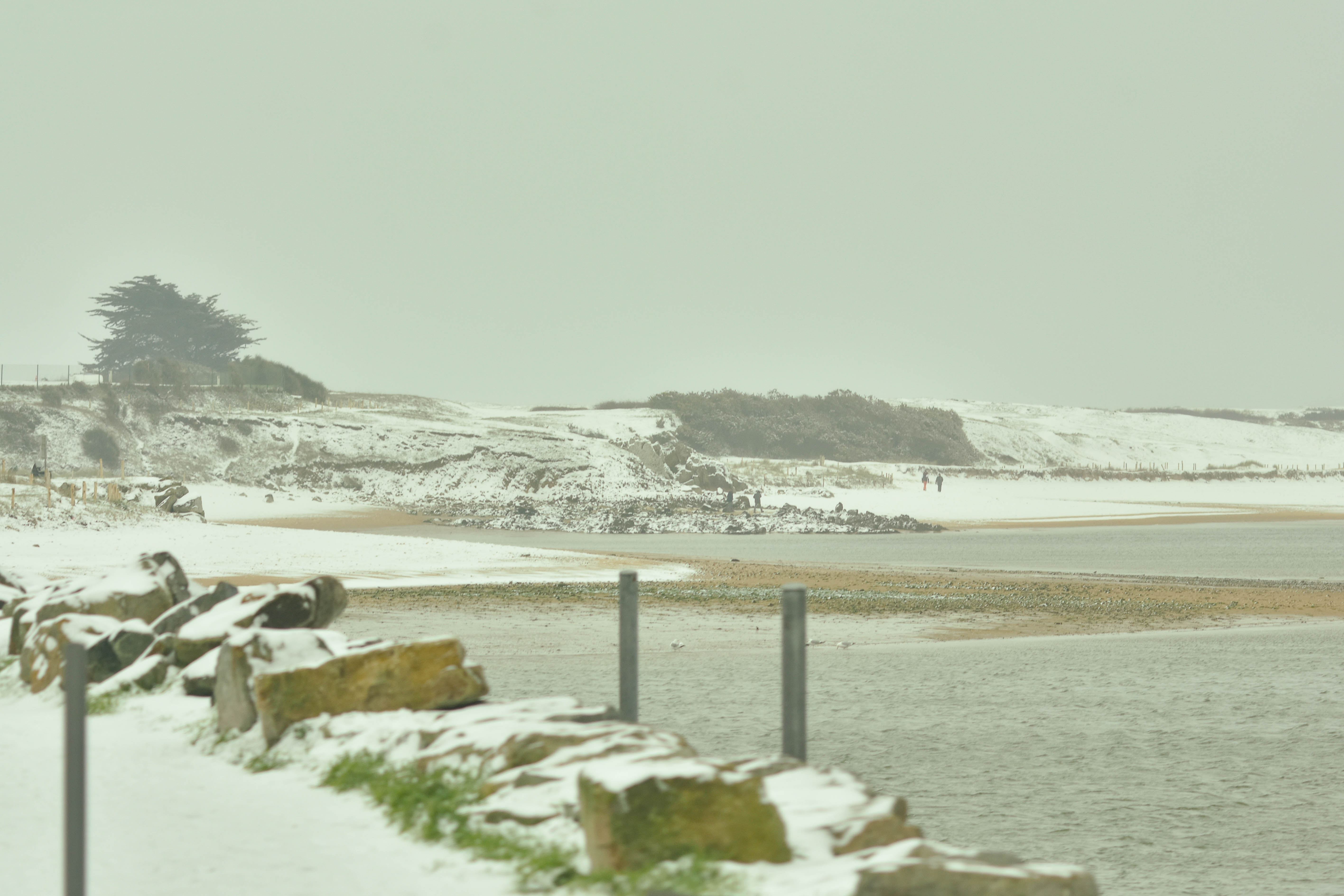 Tout le monde en Bretagne a dégainé son objectif, a partagé des tas et des tas de photo, toutes plus belles les unes que les autres, parce que c’est vrai, de la neige ici, c’est rare. Encore plus en bord de mer. Et le chaland sous cette « épaisse » couche, n’avait plus l’air d’autre chose qu’un lion au repos, figé comme un sphinx.