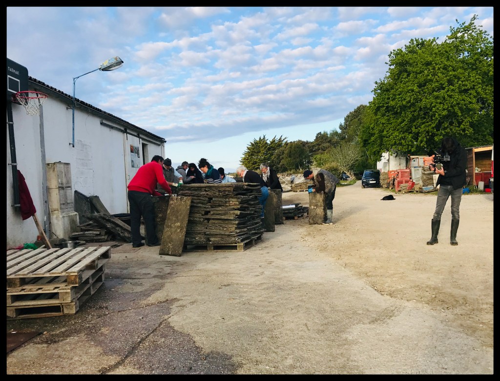 Comme nous sommes un peu « fous », ou trop enthousiastes, nous avions dit oui à une équipe de tournage pour un documentaire qui devrait paraître en novembre. Fred Chesneau avait déjà passé quelques heures informelles avec nous, pour discuter de qui, de comment et de pourquoi. Et comme je n’ai jamais vu d’images sur la mise en place du naissain, ce moment si particulier de la vie des ostréiculteurs que nous sommes, j’avais pensé que, peut-être, elles avaient toutes leur raison d’être, en dehors des habituelles de la saison de Noël. L’assentiment (léger) de mon patron avait validé l’affaire.