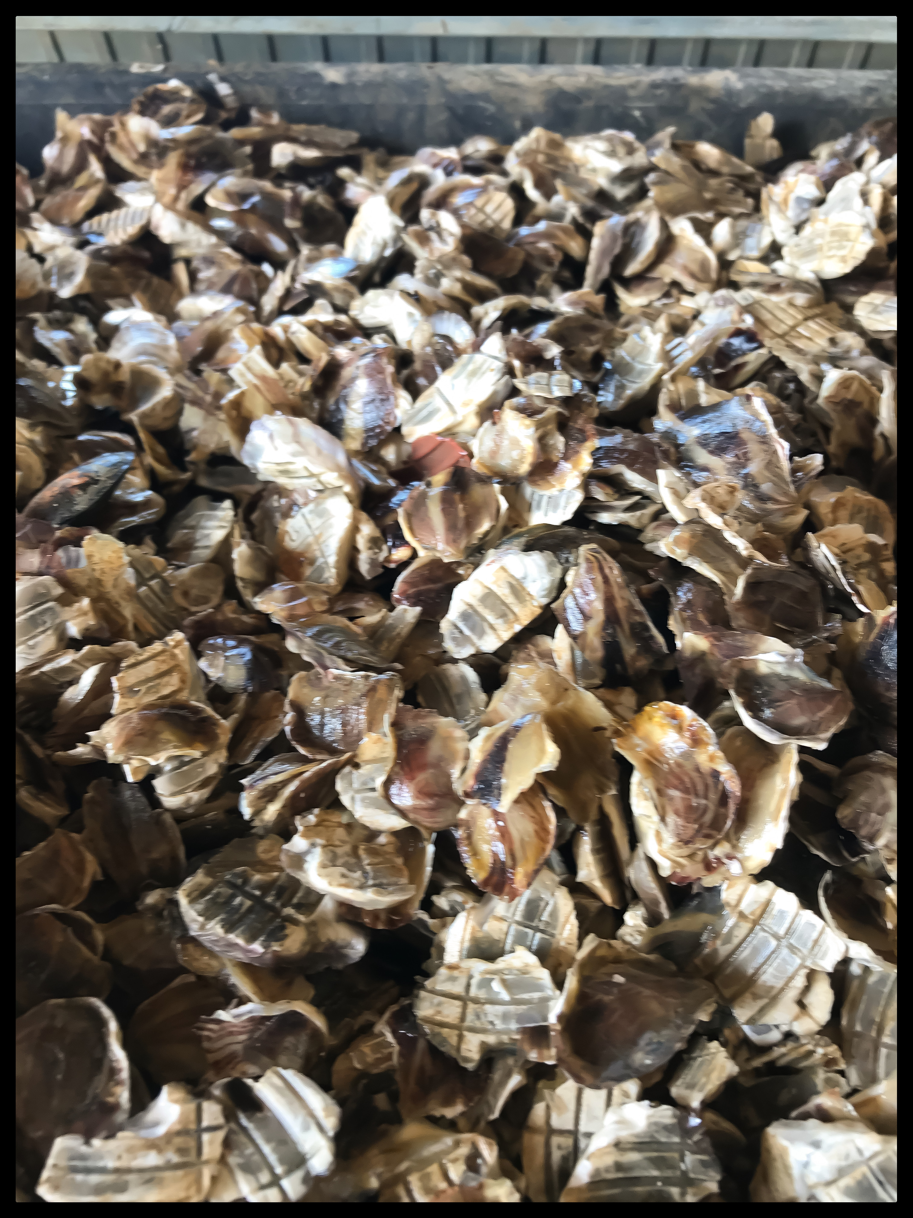 Voit la marque des coupelles sur la coquille : elle restera toute la vie de l’huître, vers son talon, elle donne sa provenance certaine : née en mer. Certaines huîtres sont trop petites pour avoir cette marque, seule la confiance envers le producteur ou le label Ostréiculteur traditionnel et/ou N&P, ou encore Slow Food, donne la garantie de l’origine