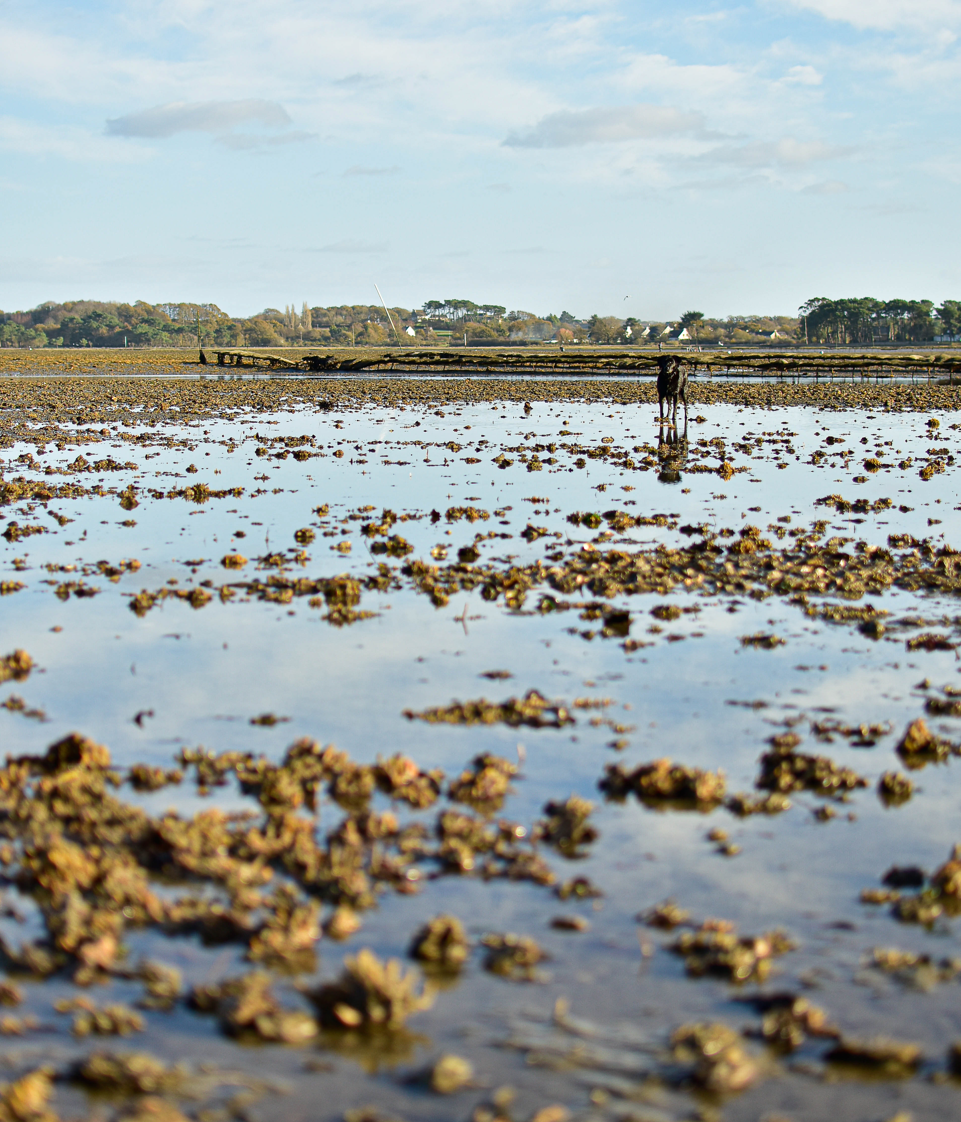 À vrai dire, hier soir vers 18:30, nous faisions une marée râteau/fourche d’amoureux, ça arrive aussi, mais je n’avais ni appareil photo ni téléphone pour marquer la lumière magnifique qui dessinait l’ombre portée des huîtres, colorait d’ocre le sol plein de petits coquillages variés, un vrai bonheur de travailler dans le silence et la paix d’un endroit magique, où le héron cendré nous laisse l’admirer avant de s’envoler plus loin.