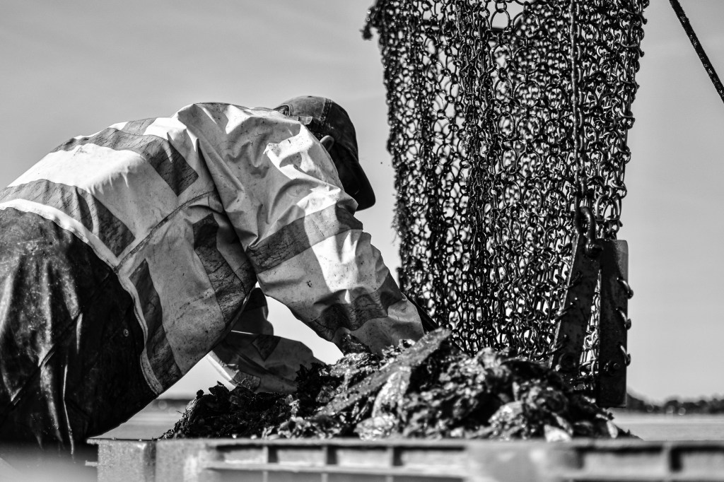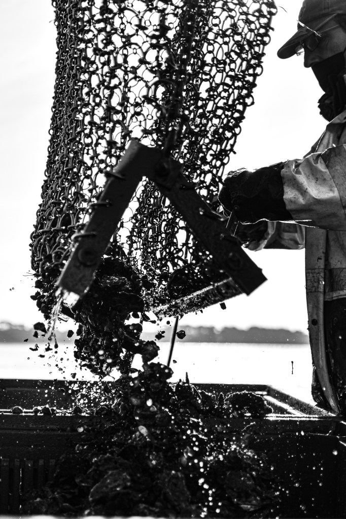 Quand la drague ne pêche plus, ou trop peu, c’est que tout le carré a été levé. Pourtant, il reste pas mal « d’éparses », ces huîtres qui n’ont pas été attrapées au passage de la drague, ou qui ont été chassées sur les bords du carré, au virage du chaland, au déplacement des courants.