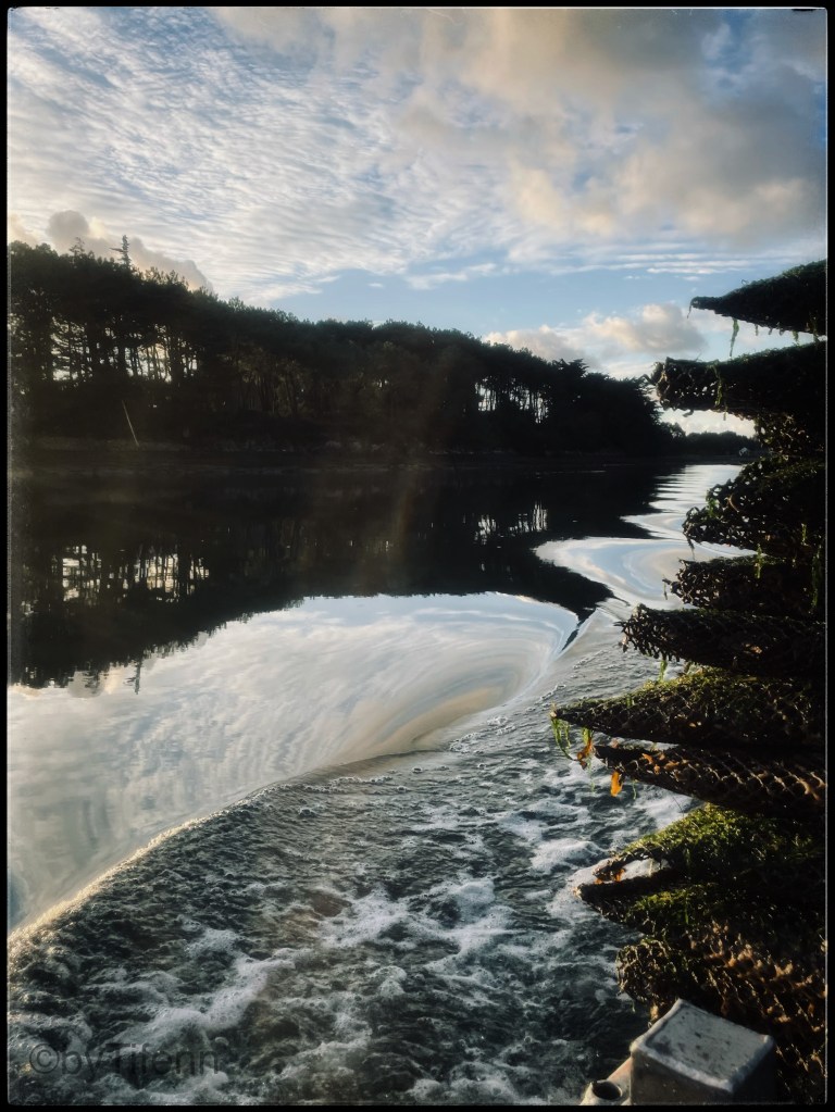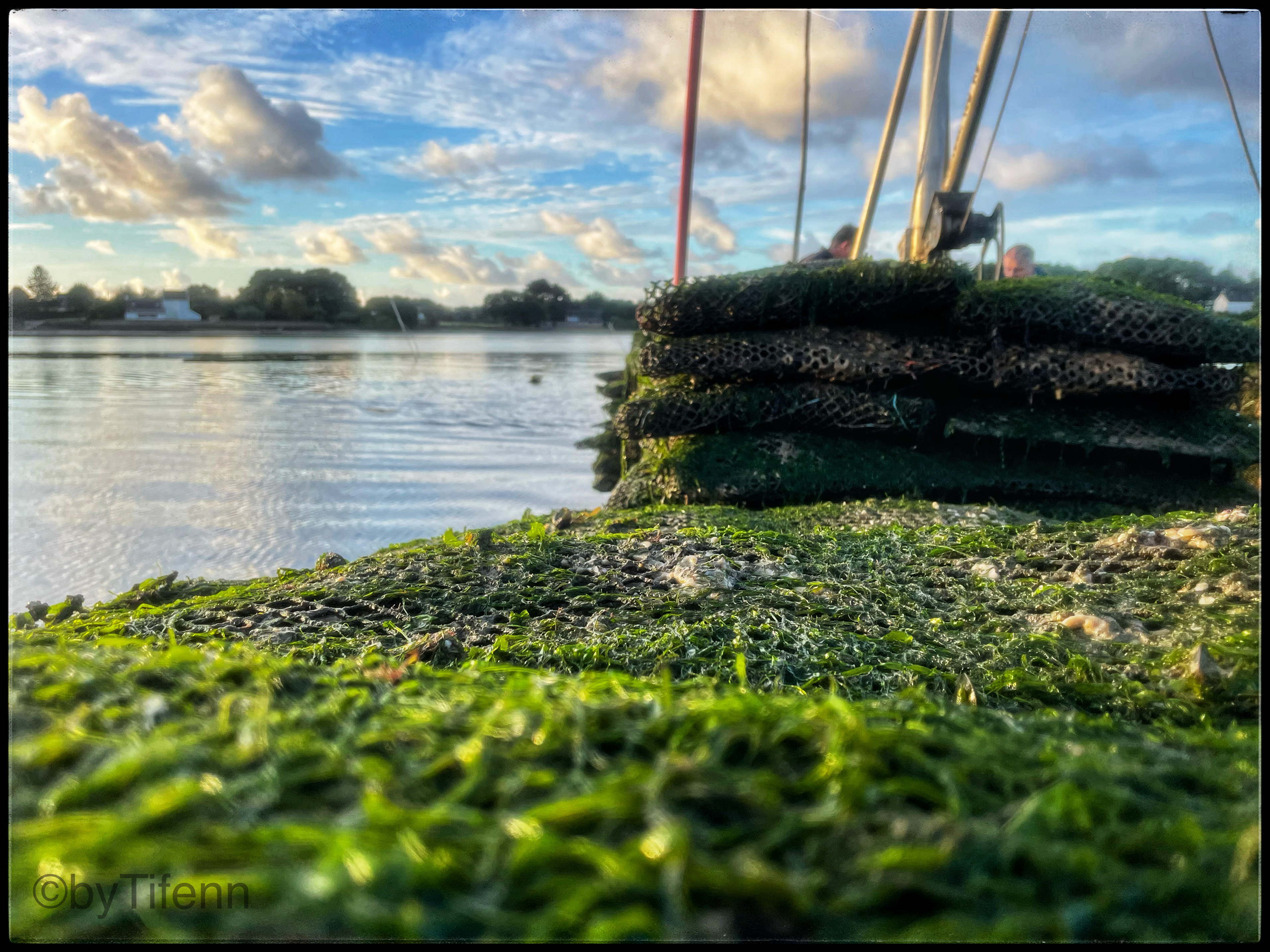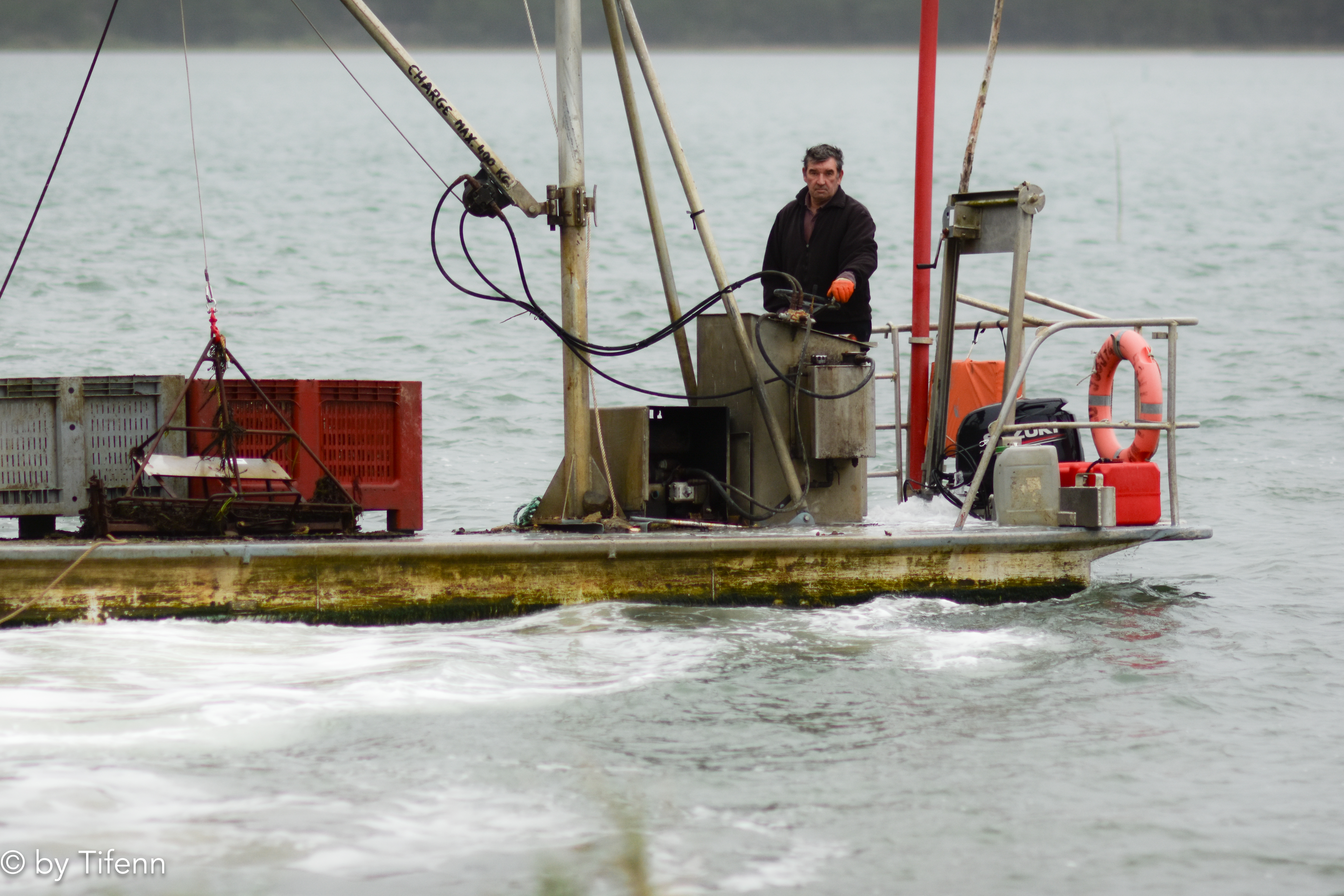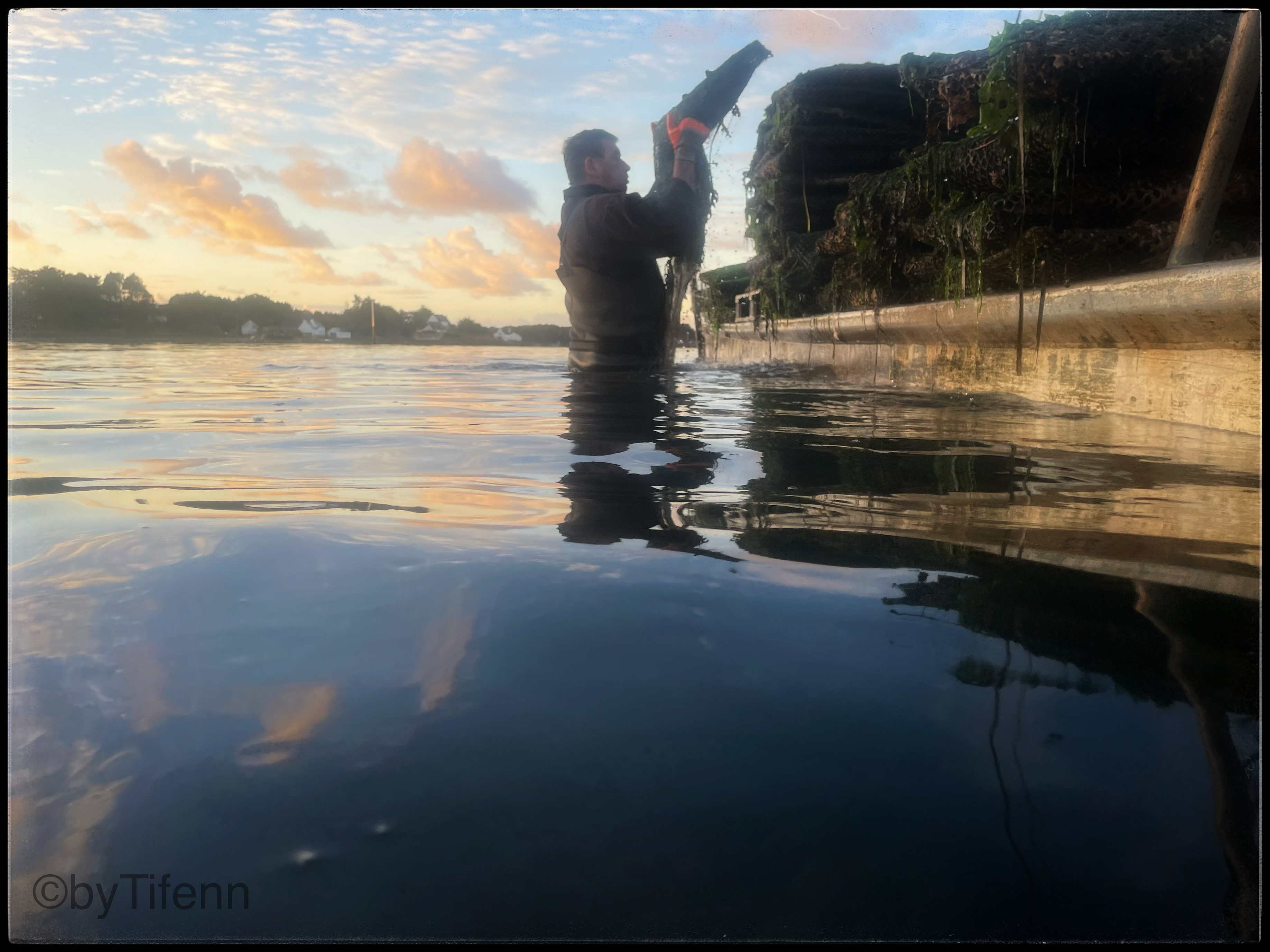 Nous remettons en place un rythme de travail habituel en ce mois d’avant l’hiver, le tri des poches, des huîtres qui sont dedans, pour les mettre par taille « les calibrer » et les replacer sur les tables, en mer, afin qu’elles continuent de profiter, au calme, ou presque, des phytoplanctons encore très présents vu l’ensoleillement et la chaleur qui ont duré plus qu’il ne faut.